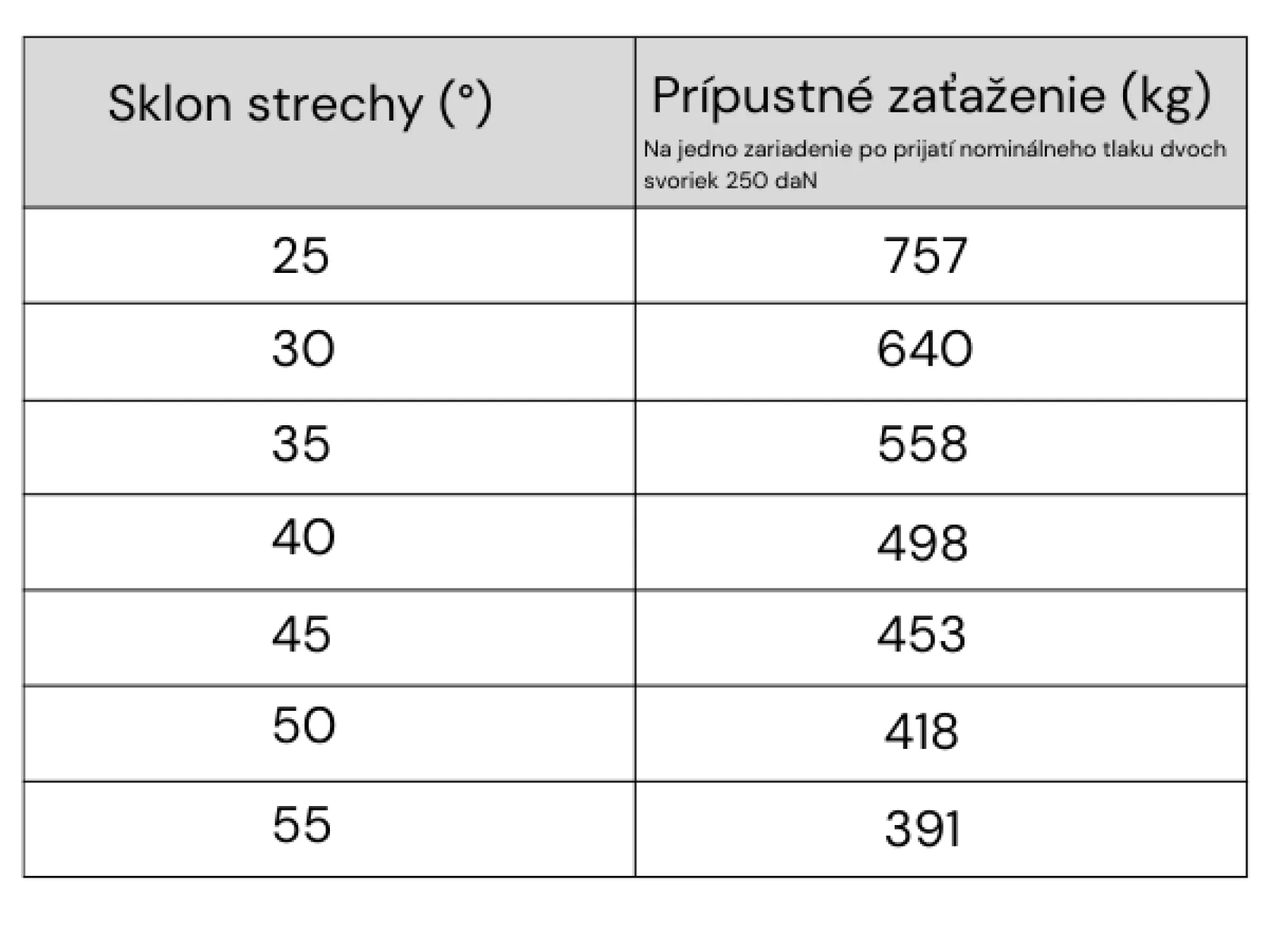 • Umožňuje horizontálnu inštaláciu pracovných plošín na strechách s uhlom sklonu 25 až 55 stupňov.