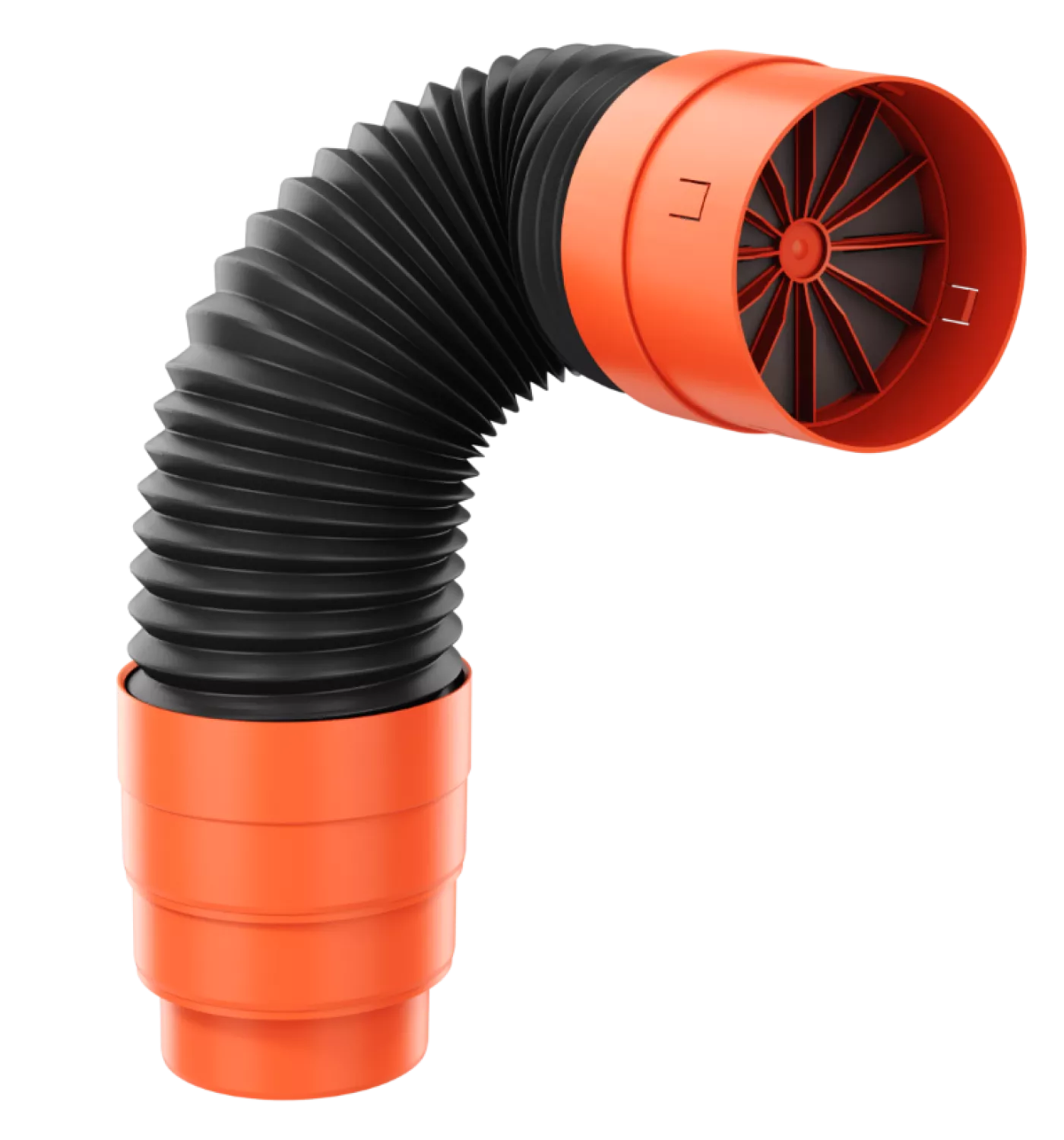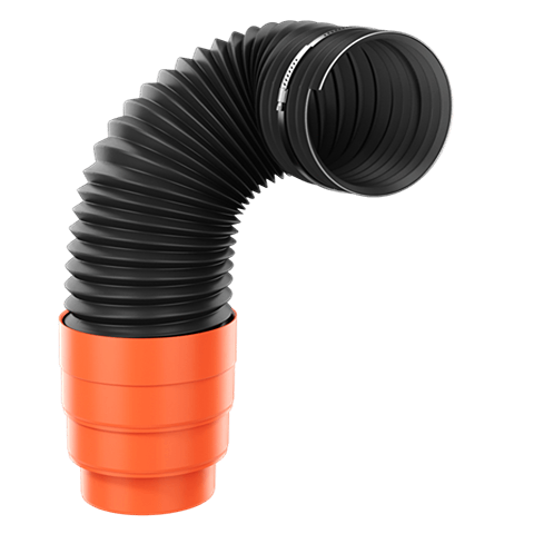 - Oceľová pružina v konštrukcii rúry umožňuje flexibilné pripojenie na ventilačné potrubie.